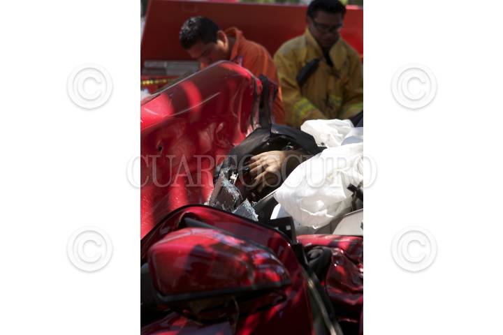 VILLAHERMOSA, TABASCO, 30MAYO2012.- Un joven perdió la vida cuando se impacto a bordo de su camioneta tipo pick ups contra un poste de concreto que sostiene un puente peatonal al ir huyendo de sus secuestradores. Los hechos acontecieron sobre el bulevar Adolfo Ruiz Cortinez de la colonia Tabasco Dos Mil, donde autoridades policiacas acordonas el área. FOTO: MARCO POLO GUZMÁN HERNÁNDEZ /CUARTOSCURO.COM