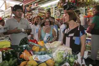 MÉXICO, D.F., 30MAYO2012.- Rosario Guerra, candidata a jefa de gobierno del D.F., recorrió el mercado de Ciudad Jardín, en la Delegación Coyoacán, donde le plantearon diversas solicitudes y carencias de sus locales. FOTO: JUAN PABLO ZAMORA /CUARTOSCURO.COM