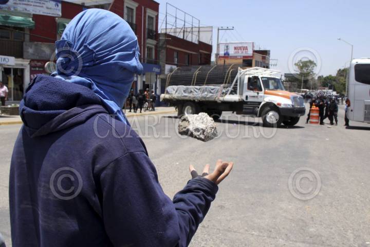 OAXACA, OAXACA, 30MAYO2012.- Elementos de la Policía Estatal desalojaron a los integrantes de la Confederación Obrera Nacional de la Construcción (CONCRETO) Siglo XXI, quienes bloquearon el crucero de Cinco Señores en la ciudad de Oaxaca. El operativo estuvo bajo el mando del comisionado de la Policía Estatal, César Cruz Alfaro, quien se encuentra suspendido del cargo desde el mes de febrero. FOTO: ARTURO PÉREZ ALFONSO /CUARTOSCURO.COM