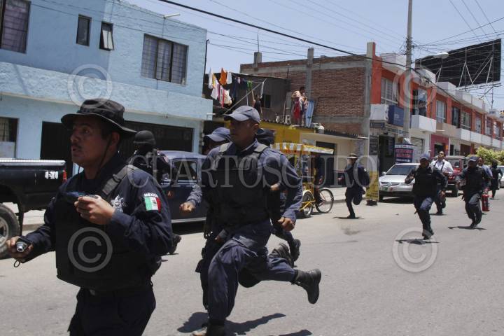 OAXACA, OAXACA, 30MAYO2012.- Elementos de la Policía Estatal desalojaron a los integrantes de la Confederación Obrera Nacional de la Construcción (CONCRETO) Siglo XXI, quienes bloquearon el crucero de Cinco Señores en la ciudad de Oaxaca. El operativo estuvo bajo el mando del comisionado de la Policía Estatal, César Cruz Alfaro, quien se encuentra suspendido del cargo desde el mes de febrero. FOTO: ARTURO PÉREZ ALFONSO /CUARTOSCURO.COM