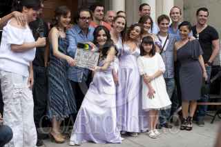 MÉXICO, D.F., 31MAYO2012.- Las actrices, Miriam Higareda y su hermana Martha Higareda, actuan en la cinta de Marco Polo Constandse "Casese quien Pueda" que el día de hoy dieron el claquetazo inicial de filmaciones, el acto tuvo como marco la iglesia de la Sagrada Familia en la Colonia Roma. FOTO: FRANCISCO RODRÍGUEZ /CUARTOSCURO.COM