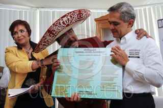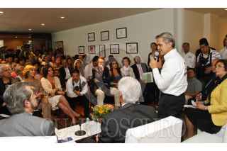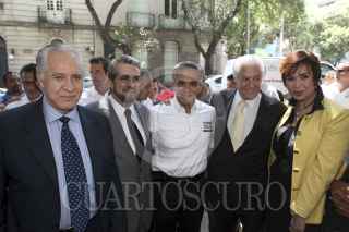 MÉXICO, D.F., 01JUNIO2012.- Los actores Rogelio Guerra, Manuel "El Flaco" Ibañez, y Elizabeth Aguilar, así como Miguel Ángel Mancera, candidato a la Jefatura de Gobierno del Distrito Federal, quien se reunió con actores e interpretes miembros de la ANDA y ANDI. FOTO: CUARTOSCURO.COM