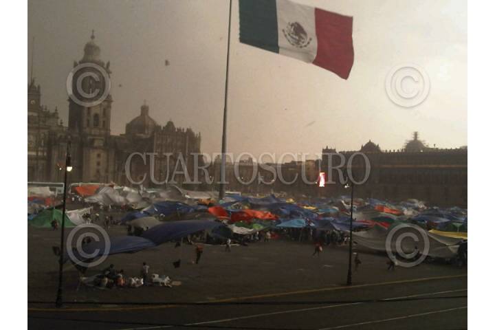 MÉXICO, D.F., 01JUNIO2012.- Un fenómeno meteorológico de vientos cruzados generó la tarde de hoy un tornado que azoto el centro de la ciudad, que arrasó con el campamento que mantenian maestros de la CNTE, lo que dejó por lo menos 27 personas lesionadas. El tornado originó a su paso rachas de mas de 50Km por Hora que dejó la caida de varios arboles y un espectacular en la calle de Topacio y Fray Servando Teresa de Mier. FOTO: TWITTER /CUARTOSCURO.COM