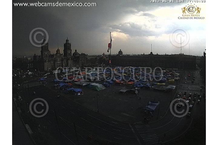 MÉXICO, D.F., 01JUNIO2012.- Un fenómeno meteorológico de vientos cruzados generó la tarde de hoy un tornado que azoto el centro de la ciudad, que arrasó con el campamento que mantenian maestros de la CNTE, lo que dejó por lo menos 27 personas lesionadas. El tornado originó a su paso rachas de mas de 50Km por Hora que dejó la caida de varios arboles y un espectacular en la calle de Topacio y Fray Servando Teresa de Mier. FOTO: TWITTER /CUARTOSCURO.COM