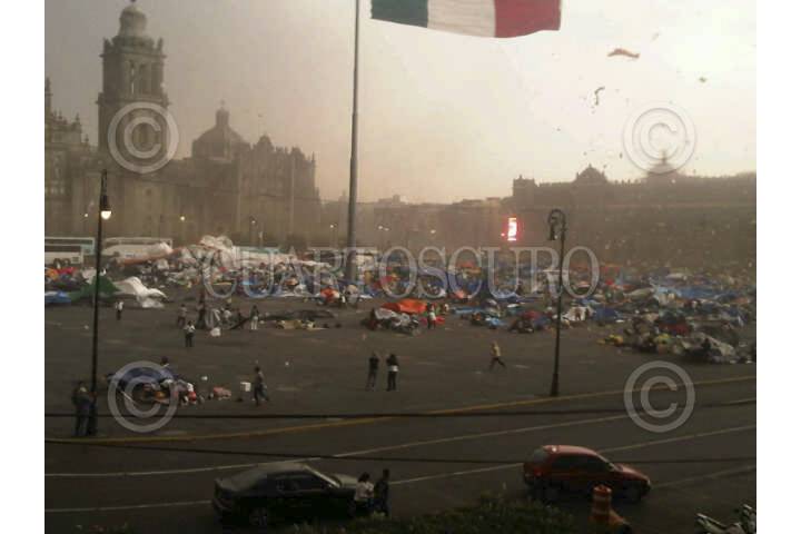MÉXICO, D.F., 01JUNIO2012.- Un fenómeno meteorológico de vientos cruzados generó la tarde de hoy un tornado que azoto el centro de la ciudad, que arrasó con el campamento que mantenian maestros de la CNTE, lo que dejó por lo menos 27 personas lesionadas. El tornado originó a su paso rachas de mas de 50Km por Hora que dejó la caida de varios arboles y un espectacular en la calle de Topacio y Fray Servando Teresa de Mier. FOTO: TWITTER /CUARTOSCURO.COM