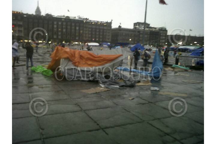 MÉXICO, D.F., 01JUNIO2012.- Un fenómeno meteorológico de vientos cruzados generó la tarde de hoy un tornado que azoto el centro de la ciudad, que arrasó con el campamento que mantenian maestros de la CNTE, lo que dejó por lo menos 27 personas lesionadas. El tornado originó a su paso rachas de mas de 50Km por Hora que dejó la caida de varios arboles y un espectacular en la calle de Topacio y Fray Servando Teresa de Mier. FOTO: TWITTER /CUARTOSCURO.COM
