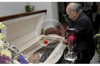 MÉXICO, D.F., 02JUNIO2012.- El fotógrafo Héctor García es velado en una funeraria al sur de la capital. Sus restos son acompañados por su inseparable María García, hijos y amigos del gremio. El "fotógrafo de la calle" murió de una insuficiencia cardíaca a los 88 años. FOTO: PATRICIA JUÁREZ /CUARTOSCURO.COM