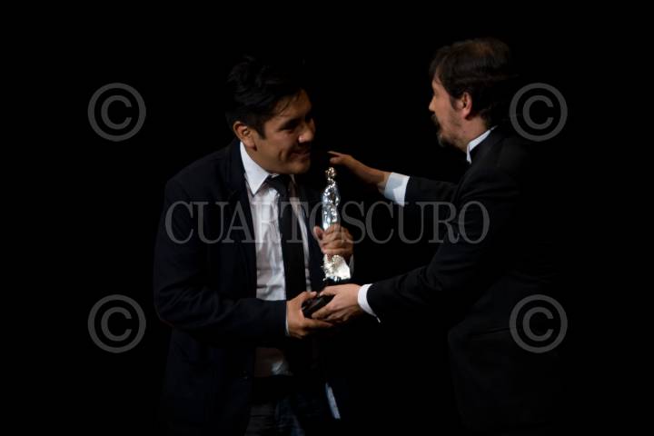 MÉXICO, D.F., 02JUNIO2012.- El director de cine, Emilio Portes se llevó esta noche el Ariel a mejor guión original por la cinta "LA Pastorela" en la 54 entrega de los Arieles la noche de hoy en el Palacio de Bellas Artes. FOTO: FRANCISCO RODRÍGUEZ /CUARTOSCURO.COM