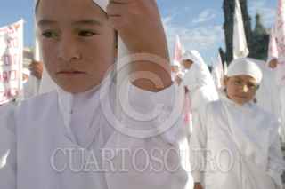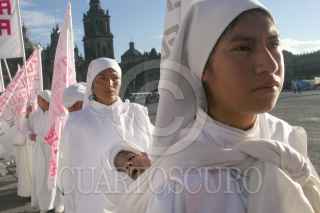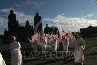 MEXICO D.F 11 MARZO 2005.- Integrantes de la Iglesia "Jesucristo el todo Poderoso" provenientes del estado de México visitaron el zócalo capitalino con afán de " evangelizar la ciudad". FOTO: Eunice Adorno/CUARTOSCURO.COM