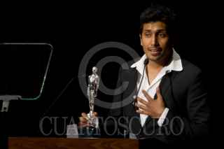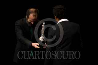 MÉXICO, D.F., 02JUNIO2012.- El actor, Tenoch Huerta se llevó el Ariel a mejor actor por la cinta "Dias de Gracia" l en la 54 entrega de los Arieles la noche de hoy en el Palacio de Bellas Artes. FOTO: FRANCISCO RODRÍGUEZ /CUARTOSCURO.COM