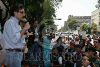 MÉXICO, D.F. 03JUNIO2012.- Gabriel Quadri De La Torre, candidato presidencial de Nueva Alianza, realizó hoy un acto de campaña en la Avenida Félix Cuevas, aun cerrada por las obras de la Línea 12 del Metro. Ahí presentó un plan para convertir Félix cuevas en un espacio peatonal y cultural. Al acto acudieron sus hijos PAulo, recien egresado de la Maestría en Ciencias Ambientales en la Universidad de Yale, y Luciano, actual coordinador de su campaña, al igual que su esposa Thelma Lazcano, funcionaria del Gobierno del D.F. FOTO: JUAN PABLO ZAMORA /CUARTOSCURO.COM