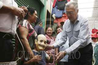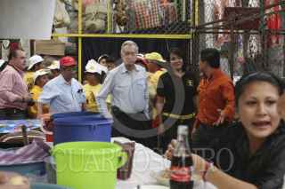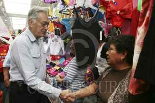 PUEBLA, PUEBLA., 03JUNIO2012.- Manuel Barttlet, candidato al senado de la república por movimiento progresista, realizó un recorrido por mercados de la ciudad para detectar las necesidades y dar a conocer sus propuestas entre los locatarios. FOTO: HILDA RÍOS /CUARTOSCURO.COM