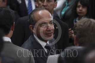 MÉXICO, D.F., 04JUNIO2012.- Felipe Calderón, Presidente de México, durante su participación en el edificio de Siemens FOTO: ENRIQUE ORDÓÑEZ /CUARTOSCURO.COM