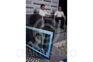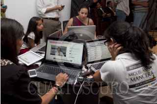 MÉXICO, D.F. 04JUNIO2012.- Miguel Ángel Mancera, candidato del Movimiento Progresista a Jefe de Gobierno del Distrito Federal, acompañado de Carlos Navarrete, Senador del PRD, participo durante un chat en vivo desde su casa de campaña con mexicanos residentes en el extranjero. FOTO: GUILLERMO PEREA /CUARTOSCURO.COM
