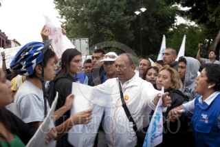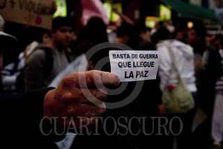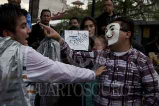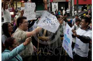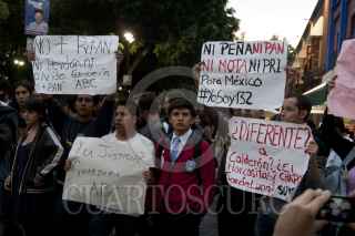 MÉXICO, D.F., 04JUNIO2012.- Participantes del movimiento #Yo soy 132, se manifestaron durante el mitín que realizaba la candidata por el PAN a la presidencia de la república, Josefina Vázquez Mota. Con pancartas y consignas como "Ni perdón, ni olvido, guardería ABC", "No + sangre" y "no otros 60 mil muertos", los jóvenes fueron encarados por simpatizantes panistas. FOTO: ADOLFO VLADIMIR /CUARTOSCURO.COM