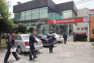 MÉXICO D.F., 05JUNIO2012.- Elementos de la policía Auxiliar de la SSP-DF, acuden a la sucursal Scotiabank de Patriotismo, ubicada sobre la avenida Patriotismo y la calle 21 en la colonia San Pedro de los Pinos, que fue asaltada por unos hombres armados al rededor de la 13:00 horas. FOTO: SAÚL LÓPEZ /CUARTOCURO.COM