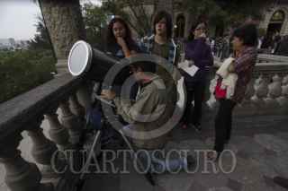 MÉXICO, D.F., 05JUNIO2012.- Algunas personas acudieron al Castillo de Chapultec a observar el pase de Venus por el Sol. FOTO: ENRIQUE ORDÓÑEZ /CUARTOSCURO.COM