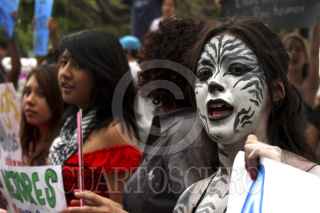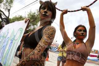 CUERNAVACA, MORELOS, 05JUNIO2012.- Aproximadamente 60 jóvenes se manifestaron a la afueras de un circo recién instalado en la Av. Vista hermosa, esto para promover los espectáculos circenses sin animales y protestar contra la crueldad animal. FOTOS: ALMA LAFAYET /CUARTOSCURO.COM
