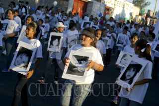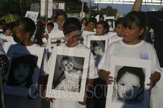 HERMOSILLO, SONORA, 05JUNIO2012.- Miles de personas marcharon de la Guardería ABC a la Plaza Emiliana de Zubeldía, en memoria de las 25 niñas y 24 niños fallecidos en el trágico incendio. Con esto, el Movimiento Ciudadano 5 de Junio A.C. cierra un programa de memoria y lucha por justicia, a tres años de la muerte de los 49 menores sin que los responsables reciban castigo. FOTO: HILARIO GUTIERREZ /CUARTOSCURO.COM