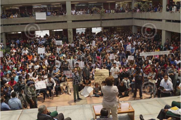 MÉXICO, D.F., 06JUNIO2012.- Isabel Miranda de Wallace, candidata a la Jefatura de Gobierno del Distrito Federal por el Partido Acción Nacional, durante la conferencia que realizó ante los estudiantes de la UAM campus Iztapalapa, la cual fue interrumpida ya que estudiantes de esta casa de estudios realizaron una protesta en su contra. FOTO: PEDRO ANZA /CUARTOSCURO.COM