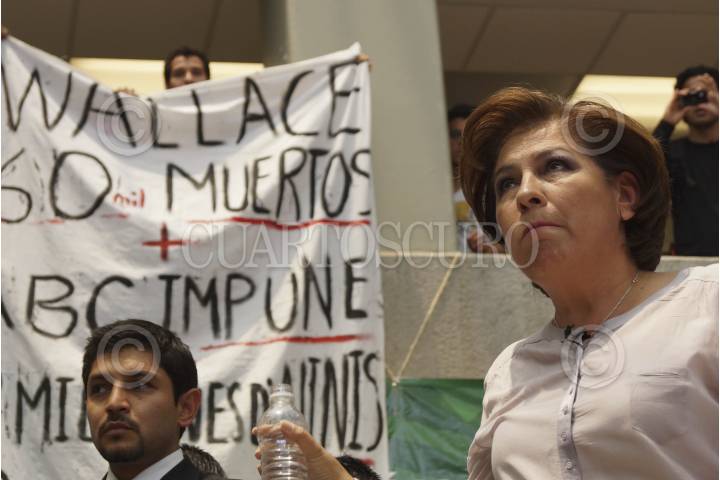MÉXICO, D.F., 06JUNIO2012.- Isabel Miranda de Wallace, candidata a la Jefatura de Gobierno del Distrito Federal por el Partido Acción Nacional, durante la conferencia que realizó ante los estudiantes de la UAM campus Iztapalapa, la cual fue interrumpida ya que estudiantes de esta casa de estudios realizaron una protesta en su contra. FOTO: PEDRO ANZA /CUARTOSCURO.COM