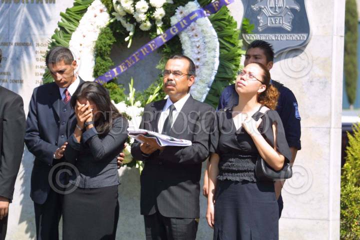 MEXICO, D.F. 12MARZO2005.- En las Instalaciones de la AFI, se llevo a cabo una ceremonia para honrar a Erneto Cabello y Euplio Tellez, integrantes de esta institución que cayeron en el cumplimiento de su deber. La ceremonia fue presidida por Carlos Javier Vega Memije, Alejandro Ramos y Gilberto Higuera Bernal. FOTO: Carla Rosas/CUARTOSCURO.COM