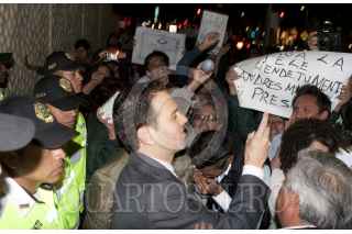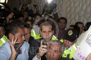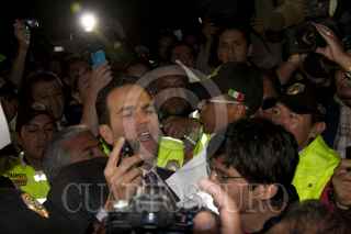 MÉXICO, D.F., 06JUNIO2012.- Carlos Loret de Mola, salió de las instalaciones de Televisa durante la manifestación de apoyo que simpatizantes de Andrés Manuel López Obrador, realizaban mientras esperaban su llegada a la televisora para asistir al programa de Tercer Grado. Los jóvenes lo tomaron como una provocación y lo encararon con gritos. FOTO: ADOLFO VLADIMIR /CUARTOSCURO.COM