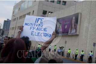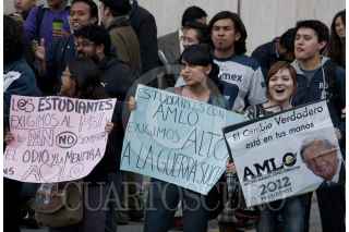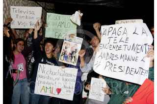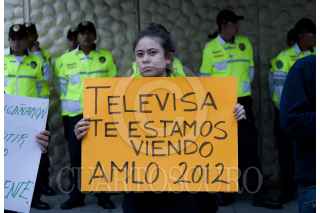 MÉXICO, D.F., 06JUNIO2012.- Simpatizantes de Andrés Manuel López Obrador, se manifestaron frente a las instalaciones de Televisa Chapultepec, para exigir el término de la guerra sucia en contra del candidato del Movimiento Progresista y el sesgo informativo que la televisora hace de la campaña electoral a la presidencia de la república. FOTO: ADOLFO VLADIMIR /CUARTOSCURO.COM