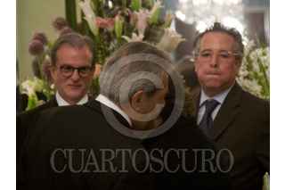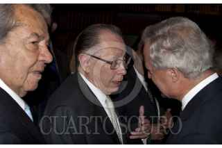 MÉXICO, D.F., 07JUNIO2012.- Porfirio Muñoz Ledo, conversa al oído con Carmen Aristegui, durante la ceremonia de despedida del embajador de Francia, Daniel Parfait. FOTO: ADOLFO VLADIMIR /CUARTOSCURO.COM