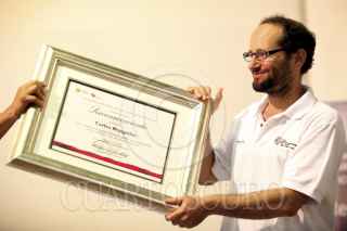 VERACRUZ, VERACRUZ., 07JUNIO2012.- Luego de su visita a Francia, donde ganó el premio de Mejor Director del Festival de Cannes por la película Post Tenebras Lux, Carlos Reygadas platicó con cinéfilos del puerto de Veracruz en donde negó que se sienta contrariado por la recepción polarizada de sus películas, explicó que el cine debe hacerse para llegar a los individuos y no a las masas. FOTO: FÉLIX MÁRQUEZ /CUARTOSCURO.COM