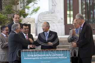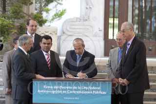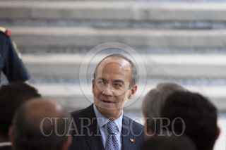 MÉXICO, D.F., 08JUNIO2012.- Felipe Calderón Hinojosa, Presidente de México, encabezó la firma de decreto de la "Ley Anticorrupción en Contrataciones Públicas", en las escalinatas de la residencia oficial de Los Pinos. FOTO: MOISÉS PABLO /CUARTOSCURO.COM