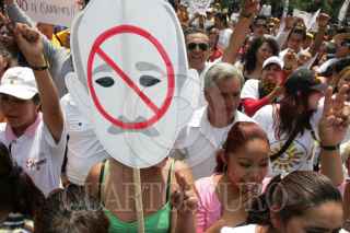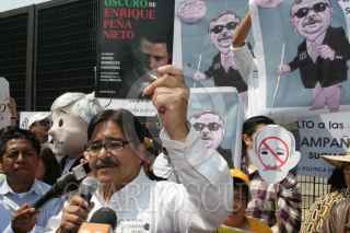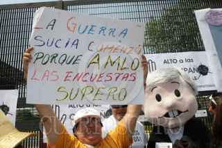 MÉXICO, D.F. 08JUNIO2012.-Simpatizantes de Andrés Manuel López Obrador, candidato del Movimineto Progresista acudieron al Instituto Federal Electoral (IFE), para manifestarse en contra de la postura de ese organo electoral respecto a los spots propagandísticos, que serán transmitidos a partir del domingo, y los cuales consideran estan editados y atentan contra la limpieza de los comicios . FOTO: JUAN PABLO ZAMORA /CUARTOSCURO.COM