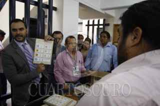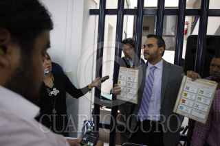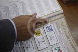 OAXACA, OAXACA, 08JUNIO2012.- Dos boletas con el mismo número de folio fueron detectadas en el distrito 08 con cabecera en Oaxaca de Juárez, la denuncia fue hecha por el representante suplente ante el Consejo Local del IFE en Oaxaca, Flavio Sosa Villavicencio en las oficinas distritales. Al lugar acudio el vocal Ejecutivo del IFE, Roberto Cardiel Soto quien explicó que la anomalía fue ocasionada por un error de impresión y que una de las dos papeletas serán canceladas y resguardadas en las bodegas del instituto, para que al término de la elección sean destruidas. FOTO: ARTURO PÉREZ ALFONSO /CUARTOSCURO.COM
