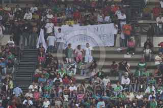 MÉXICO, D.F., 08JUNIO2012.- Mantas en contra de Peña Nieto fueron desplegadas en el Partido de México contra Guyana, y fueron retiradas por simpatizantes del priista con jaloneos y empujones. FOTO: JUAN PABLO ZAMORA /CUARTOSCURO.COM