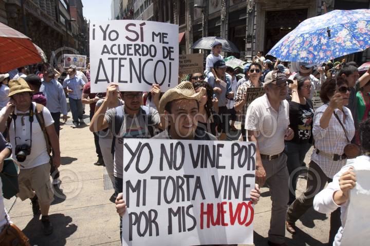 MÉXICO, D.F., 10JUNIO2012.- Miles de jóvenes universitarios salieron a marchar por segunda vez, en contra del candidato del PRI y Verde Ecologista (Coalición Compromiso Por México) y los medios de comunicación que lo favorecen. La denominada Marcha Anti EPN 2 llenó las calles de Reforma hasta el Zócalo por varias horas. FOTO: JUAN PABLO ZAMORA /CUARTOSCURO.COM
