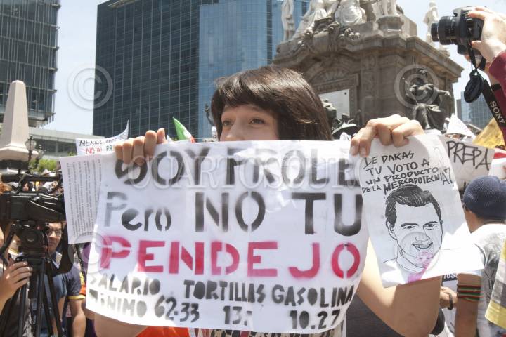 MÉXICO, D.F., 10JUNIO2012.- Miles de jóvenes universitarios salieron a marchar por segunda vez, en contra del candidato del PRI y Verde Ecologista (Coalición Compromiso Por México) y los medios de comunicación que lo favorecen. La denominada Marcha Anti EPN 2 llenó las calles de Reforma hasta el Zócalo por varias horas. FOTO: JUAN PABLO ZAMORA /CUARTOSCURO.COM
