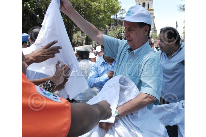 MÉXICO, D.F., 10JUNIO2012.- Rosario Guerra Díaz, candidata de Nueva Alianza a la Jefatura de Gobierno del DF, realizó actividades proselitistas en el centro de la Delegación Coyoacán, en donde saludó a los transeúntes y repartió playeras y gorras de su campaña. FOTO: JOYCE GARCÍA/ CUARTOSCURO
