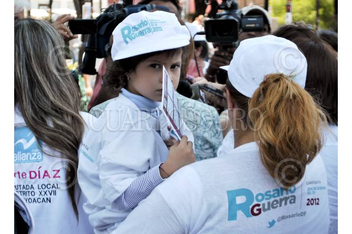 MÉXICO, D.F., 10JUNIO2012.- Rosario Guerra Díaz, candidata de Nueva Alianza a la Jefatura de Gobierno del DF, realizó actividades proselitistas en el centro de la Delegación Coyoacán, en donde saludó a los transeúntes y repartió playeras y gorras de su campaña. FOTO: JOYCE GARCÍA/ CUARTOSCURO