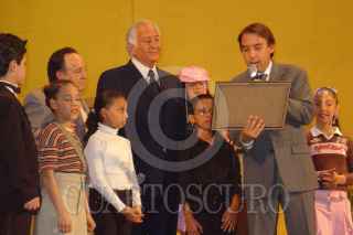 SAN LUIS POTOSI, SAN LUIS POTOSI 18MARZO2005.- Emilio Azcárraga Jean y Roberto Gómez Bolaños en ESPACIO 2005. FOTO: Marcelo Palacios/CUARTOSCURO.COM