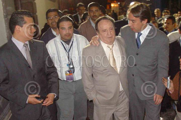 SAN LUIS POTOSI, SAN LUIS POTOSI 18MARZO2005.- Emilio Azcárraga Jean y Roberto Gómez Bolaños en ESPACIO 2005. FOTO: Marcelo Palacios/CUARTOSCURO.COM