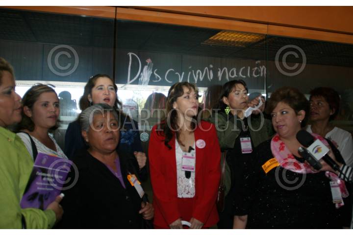 MEXICO, D.F. 18MARZO2005.- Isabel Allende y Miou y Tabares, durante el Séptimo Parlamento de Mujeres de México, en San Lázaro. FOTO: Nelly Salas/CUARTOSCURO.COM