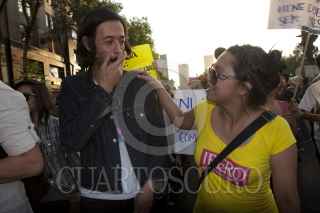 MÉXICO, D.F. 10JUNIO 2012.-Emanuel del Real, tecladista y compositor de Café Tacuba, asistió a la Marcha Antipeñanieto realizada hoy por los universitarios del grupo #YoSoy132. FOTO: JUAN PABLO ZAMORA /CUARTOSCURO.COM