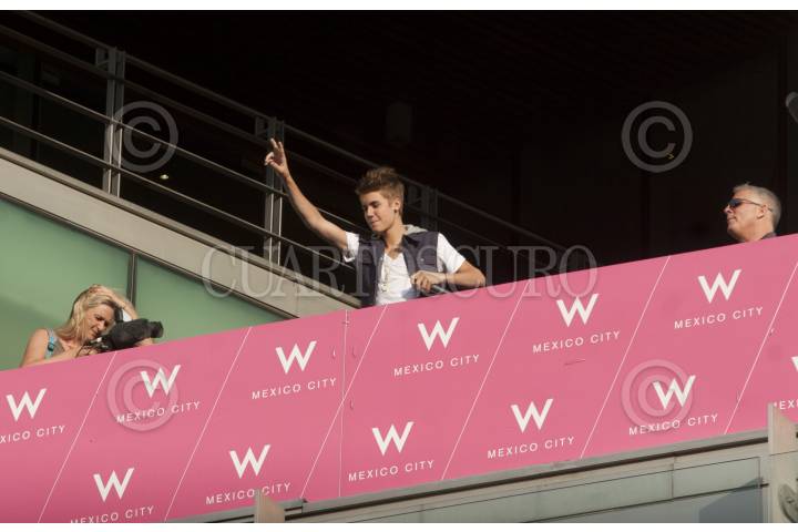 MÉXICO, D.F., 11JUNIO2012.- El cantante canadiense, Justin Bieber, salió al balcón de un hotel de Polanco la tarde de hoy a saludar a cerca de 200 fanáticos, en su mayoría jovencitas, que se apostaron a las afueras de dicho hotel desde la mañana, el joven cantanted e 18 años, cantó una estrofa de una de sus canciones y saludo a los fans además de agradecer las muestras de cariño. FOTO: FRANCISCO RODRÍGUEZ /CUARTOSCURO.COM