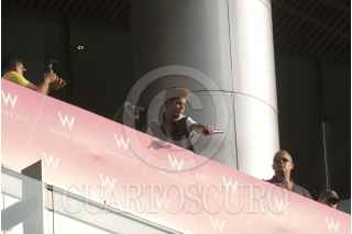 MÉXICO, D.F., 11JUNIO2012.- El cantante canadiense, Justin Bieber, salió al balcón de un hotel de Polanco la tarde de hoy a saludar a cerca de 200 fanáticos, en su mayoría jovencitas, que se apostaron a las afueras de dicho hotel desde la mañana, el joven cantanted e 18 años, cantó una estrofa de una de sus canciones y saludo a los fans además de agradecer las muestras de cariño. FOTO: FRANCISCO RODRÍGUEZ /CUARTOSCURO.COM