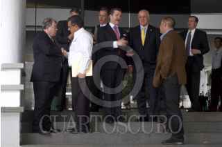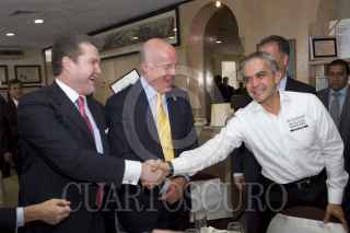 MÉXICO, D.F. 12JUNIO2012.- Meyer Klip Gervitz, Director del Instituto de Verificación Administrativa del DF y Luis Wertman Zaslav, Presidente del Consejo Ciudadano de Seguridad Pública y Procuración de Justicia del Distrito Federal, a su salida de la comida con la Comunidad Judía en el Centro Deportivo Israelita a la que asistió Miguel Ángel Mancera, candidato del Movimiento Progresista a Jefe de Gobierno del Distrito Federal,. FOTO: GUILLERMO PEREA /CUARTOSCURO.COM