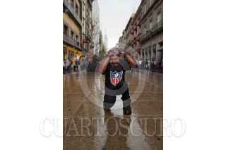 MÉXICO, D.F., 12JUNIO2012.- Aprovechando las lluvias que cayeron esta tarde en el centro de la ciudad, un hombre se enjabona al aire libre. FOTO: PEDRO ANZA /CUARTOSCURO.COM