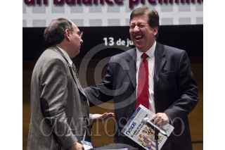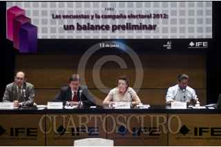 MÉXICO, D.F., 13JUNIO2012.- Julio A. Téllez, Coordinador del Proyecto Observatorio Electoral 2012 y Roberto Rock, Director Editorial de El Universal, durante el Foro: "Las Encuestas y la Campaña Electoral 2012: Un Balance Preliminar", organizado por el IFE. FOTO: IVÁN MENDEZ /CUARTOSCURO.COM