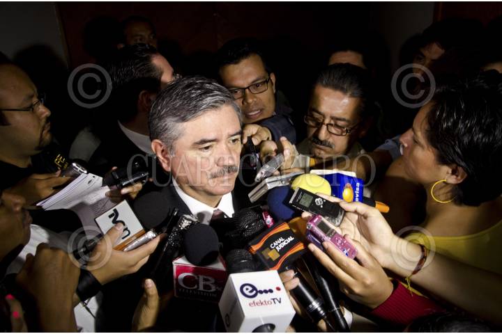 MÉXICO, D.F., 13JUNIO2012.- Julio A. Téllez, Coordinador del Proyecto Observatorio Electoral 2012 y Roberto Rock, Director Editorial de El Universal, durante el Foro: "Las Encuestas y la Campaña Electoral 2012: Un Balance Preliminar", organizado por el IFE. FOTO: IVÁN MENDEZ /CUARTOSCURO.COM