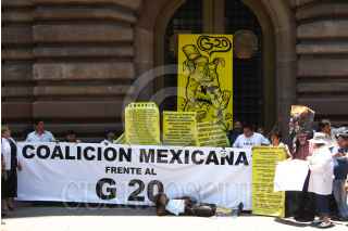 MÉXICO, D.F., 14JUNIO2012.- Un grupo de personas se manifestó y clausuro simbolicamente el edificio del Banco de México en protesta por la cumbre del G20 que se realizara en Los Cabos. FOTO: ENRIQUE ORDÓÑEZ /CUARTOSCURO.COM