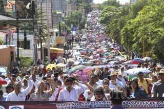 OAXACA, OAXACA, 14JUNIO2012.- Maestros de la Sección 22 del SNTE marcharon por las calles para conmemorar el sexto aniversario del desalojo fallido realizado en su contra por el ex gobernador del Estado, Ulise Ruiz Ortiz. Solamente el 20 por ciento de la membresía participó en la actividad en la que retiraron propaganda electoral. FOTO: ARTURO PÉREZ ALFONSO /CUARTOSCURO.COM